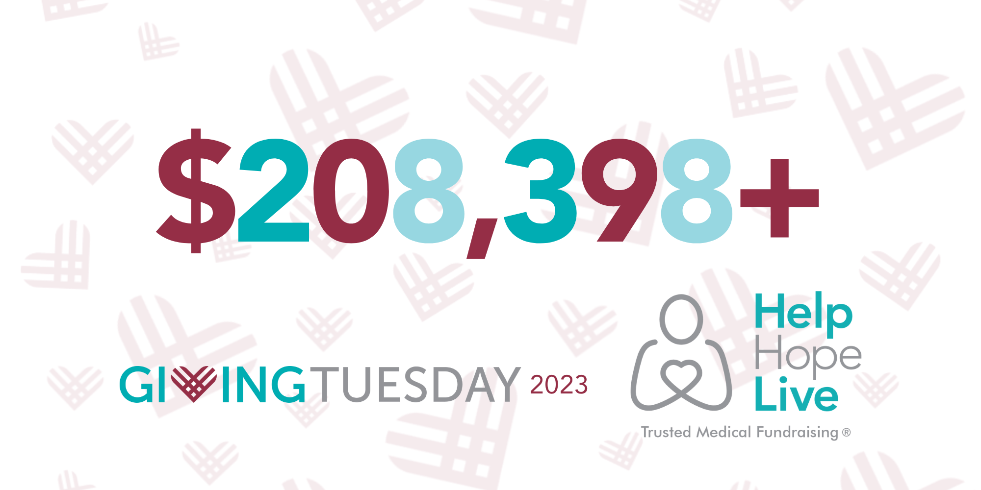 The supporters of Help Hope Live, a nonprofit that supports community-based fundraising for people with medical expenses and costs due to cell and organ transplants or catastrophic injuries and illnesses, raised over $208,000 on Giving Tuesday. 610 donors contributed, increasing Help Hope Live’s website offering from last year's Giving Tuesday by 48%!
