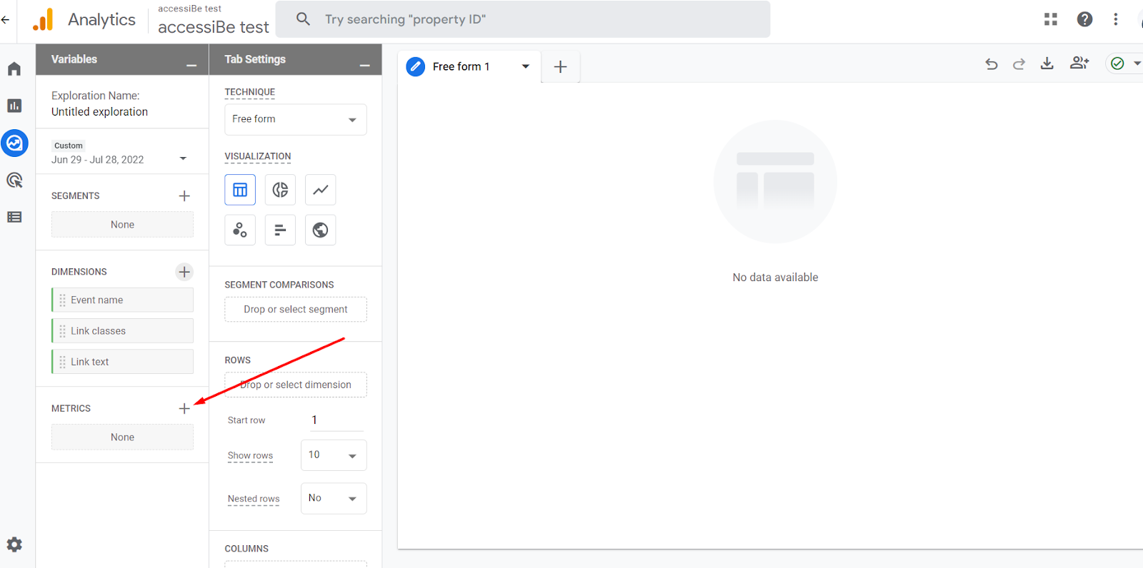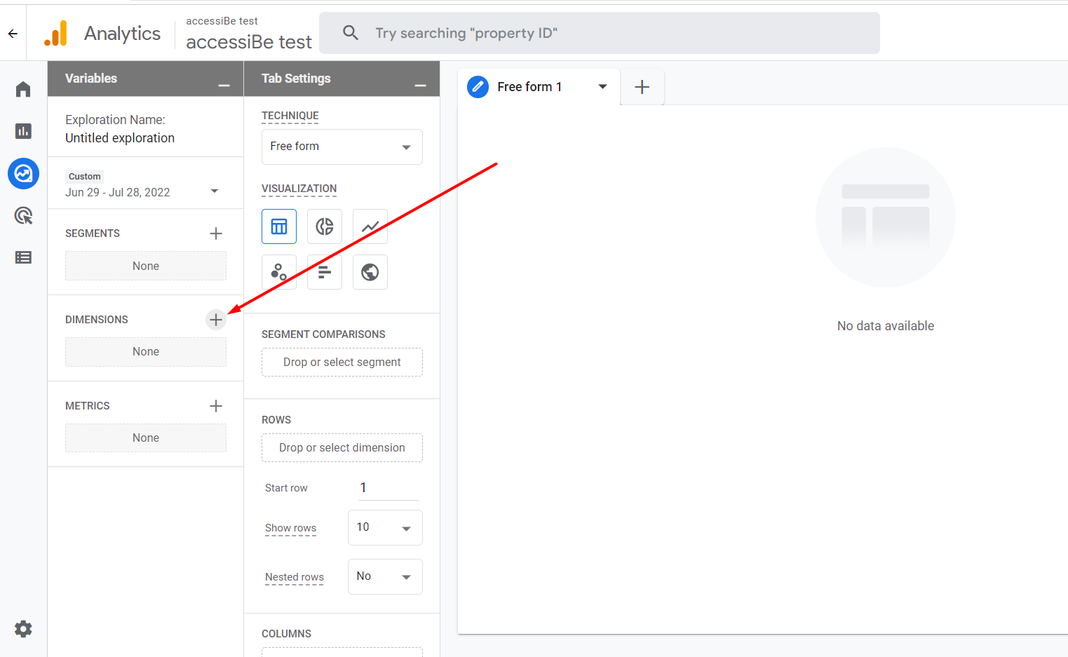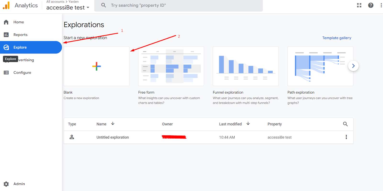 - In your Google Analytics 4 account, click “Explore”, then click “Blank”